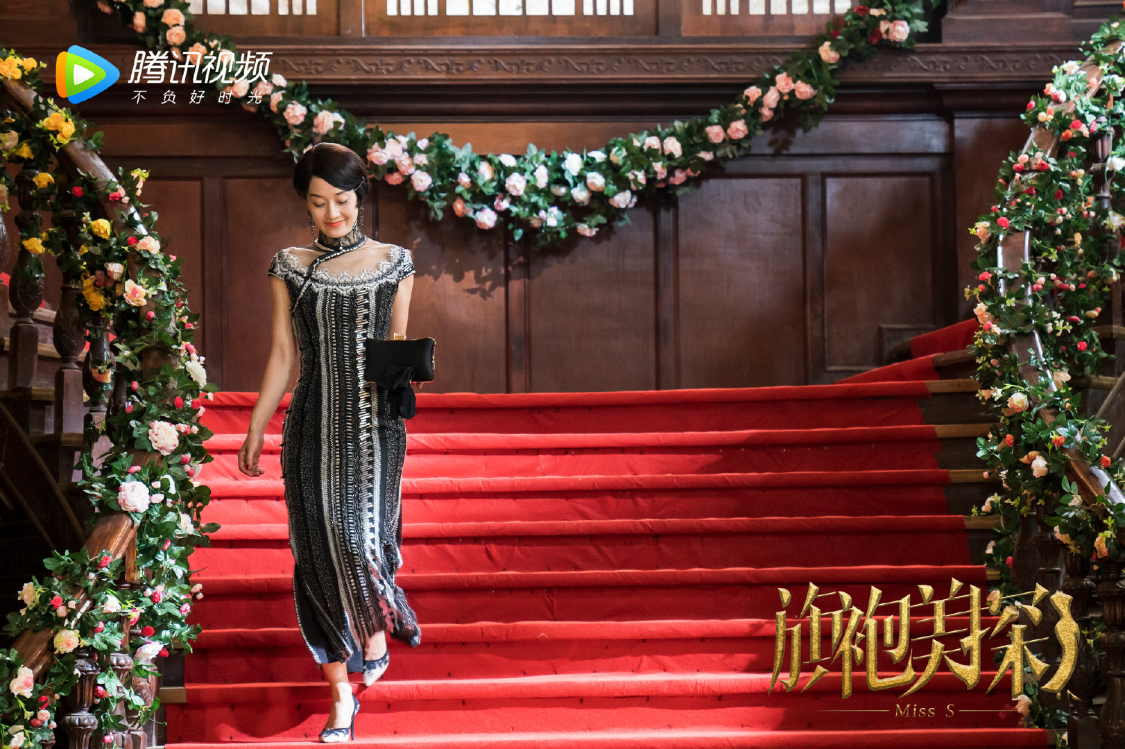 相较于剧外短发飒气十足的她,在剧中留起了二八复古造型,进而赋予了她更多的优雅知性,一袭翡翠绿旗袍在身的她单单是站在那里都给人一种优雅从容的淑女范,旗袍领口选用了立体式的设计,不仅仅包裹住了脖颈而且亦能够勾勒出她小巧的脸蛋,翡翠绿作为打底加以金色刺绣设计,反而多了一份清新高贵的气质,裁剪的设计更勾勒出她完美的身材。