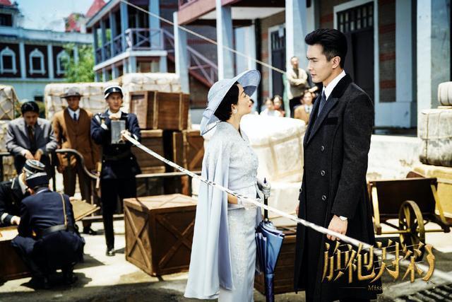 除了旗袍,洋装也是民国时期很有代表的服饰,马伊琍身着的这袭斗篷上衣配半裙的造型,知性又干练,清浅的色调十分亮眼,斗篷的设计可以说是非常有气场,马伊琍搭配一顶同色的大檐帽,戴着蕾丝的手套,名媛范十足,与帅气的高伟光简直配了一脸。