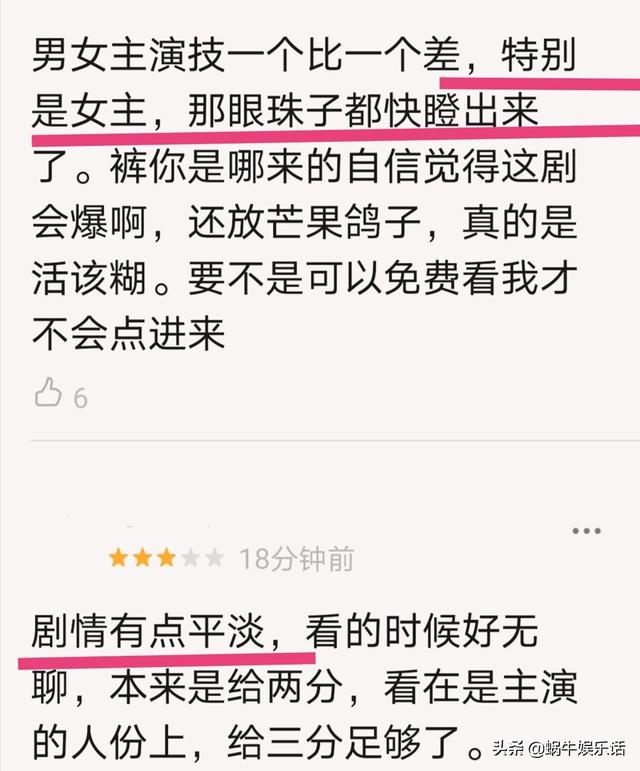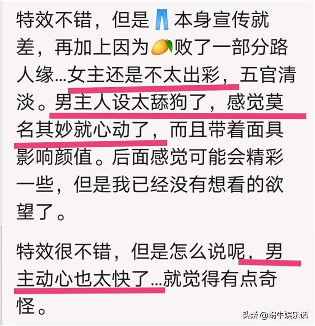 但是,蜗牛君在观看了前三集之后,发现从剧情到制作的效果,都毫无新意。因为情节的局限,对于男女主角演技上也有很多限制,许多网友也对女主袁冰妍的演技产生了质疑。