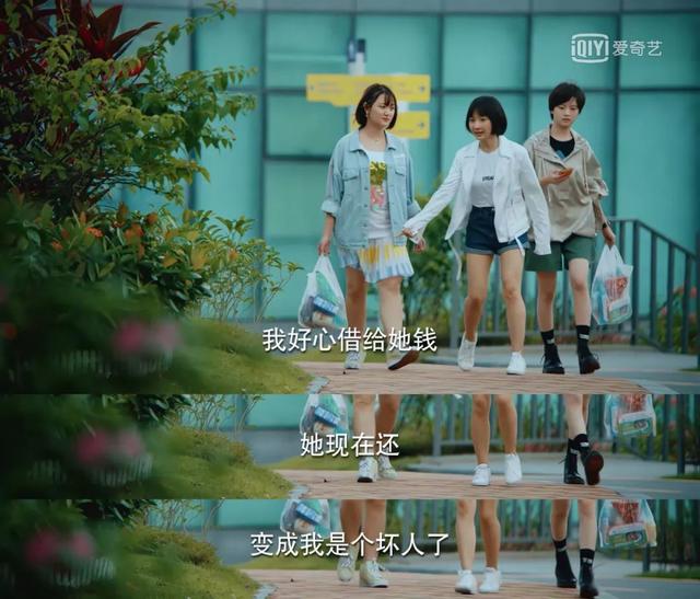 开篇的几集中,一台从高中用到大四的苹果4S让她崩溃欲绝,为了凑钱买新手机,她不得不向借钱不还的隔壁宿舍女生“追讨”。