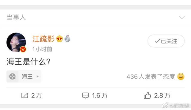 △今天的热搜是网友骂王漫妮的男友是“海王”(比喻广撒网有众多备胎的人),演王漫妮的江疏影问海王是什么意思?