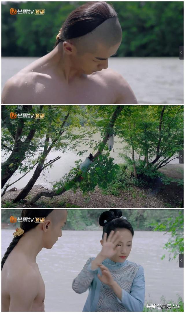 比如男女主第一次的相遇,竟然是女主看到了男主在洗澡!然后女主便试图去偷男主的衣服,未果后被裸着上身的男主逮个正着。二十多前,李逍遥偷看赵灵儿洗澡开创了此相遇套路之先河,谁曾想到了于正这里,就给反过来用了。