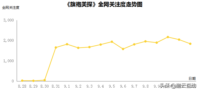 目前,该剧的全网关注度表现可圈可点。据酷云EYE显示,自开播第4日(8月31日)起,该剧全网关注度一直保持平稳的增长态势,峰值为9月10日的2164,并蝉联9月7日、8日、9日、10日、11日、12日等6天全网关注度冠军。
