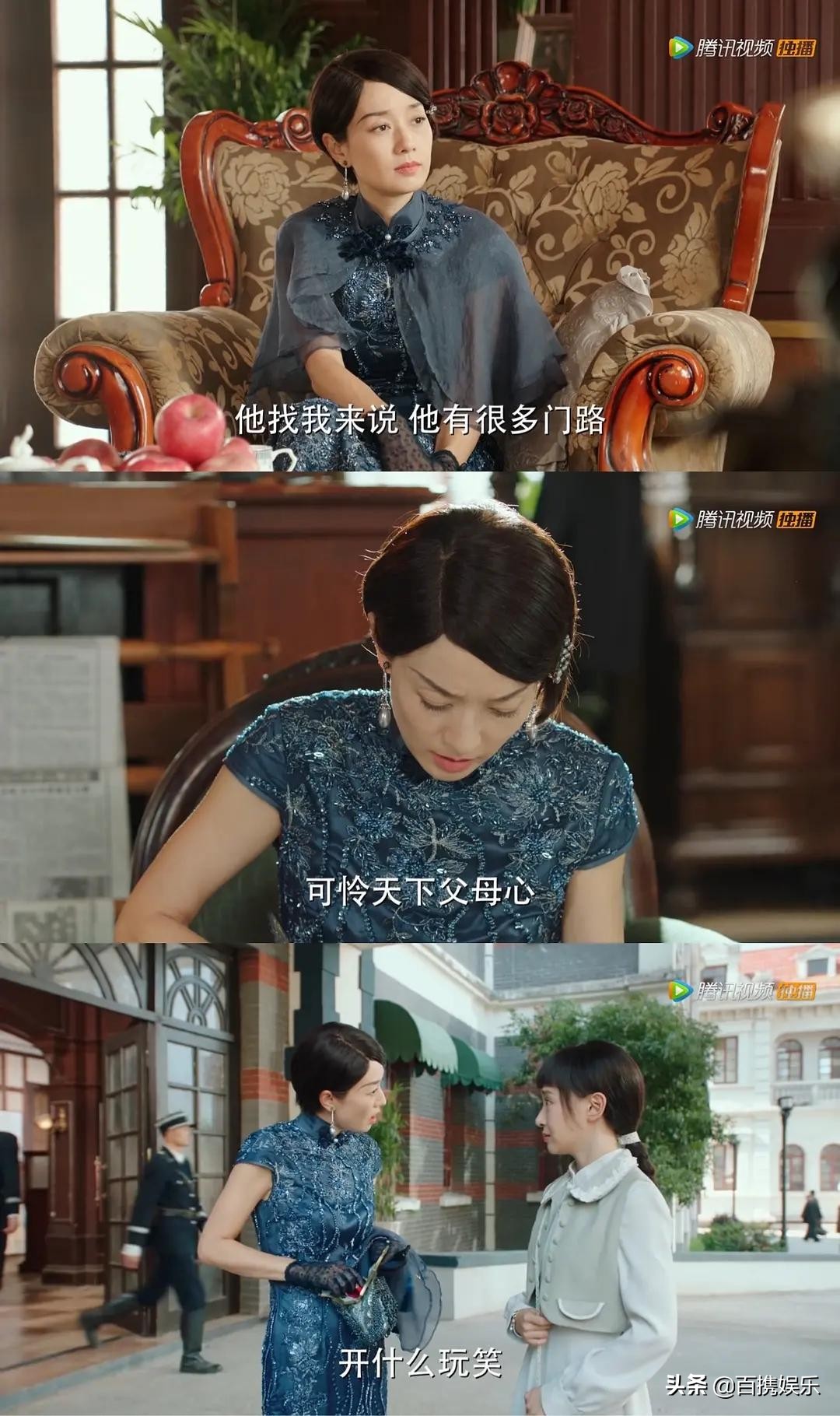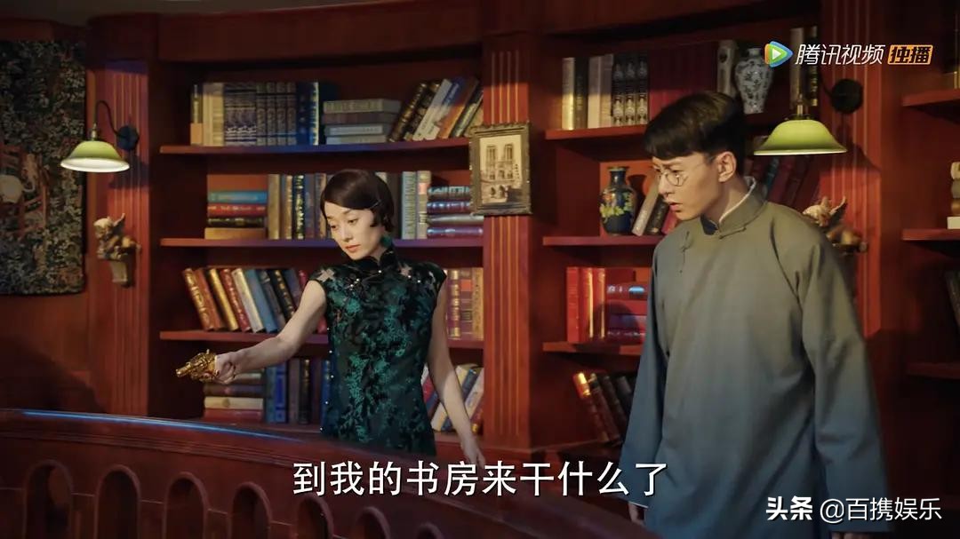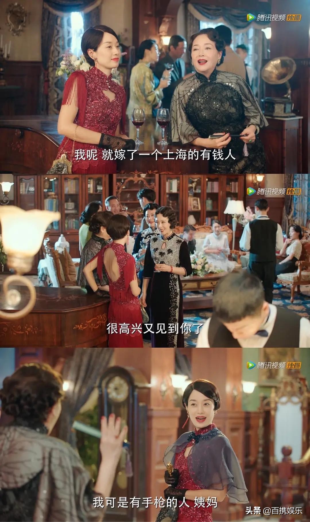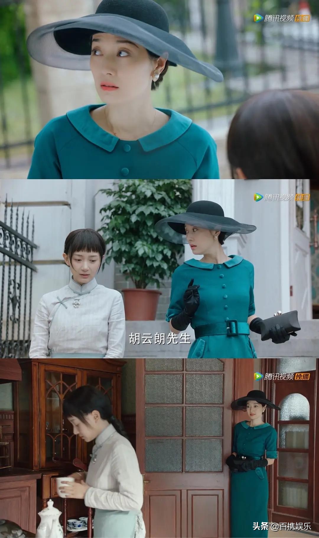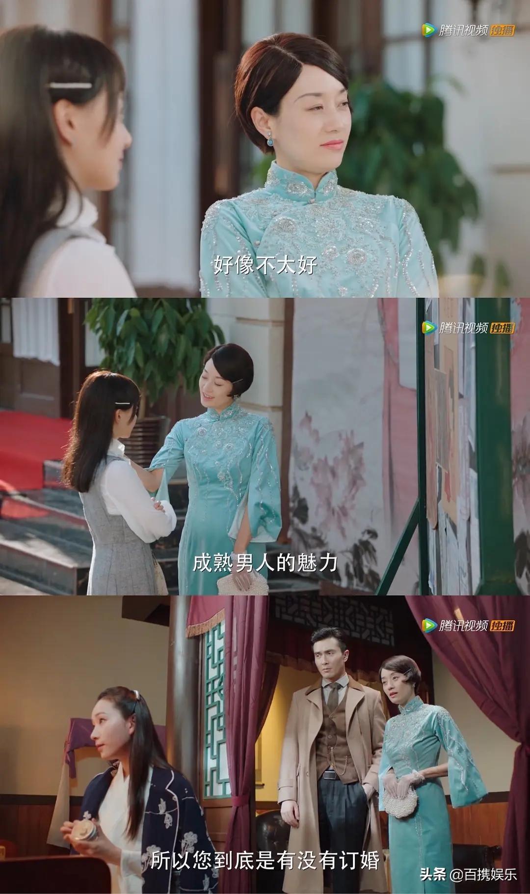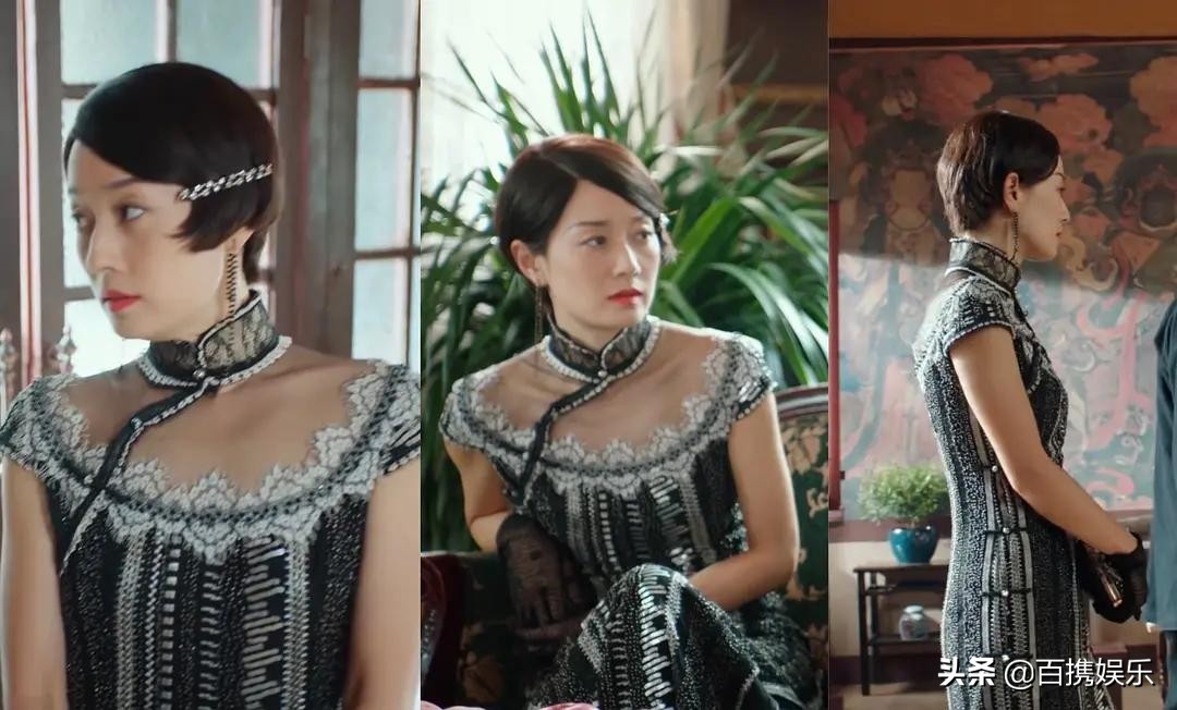第12套,墨绿旗袍,这套一闪而过了,不知道后面有没有出现,也是老气但富贵型,估计和那套红的是一个裁缝。